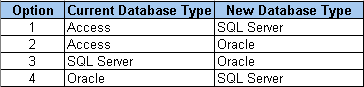 The following options are available for migrating a workgroup to a different database type: