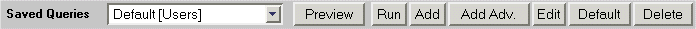Using the Saved Query bar, you can define new advanced queries, edit or remove existing advanced queries, and run or preview an advanced query. Group level advanced queries are listed followed by the User Group name in square brackets.
